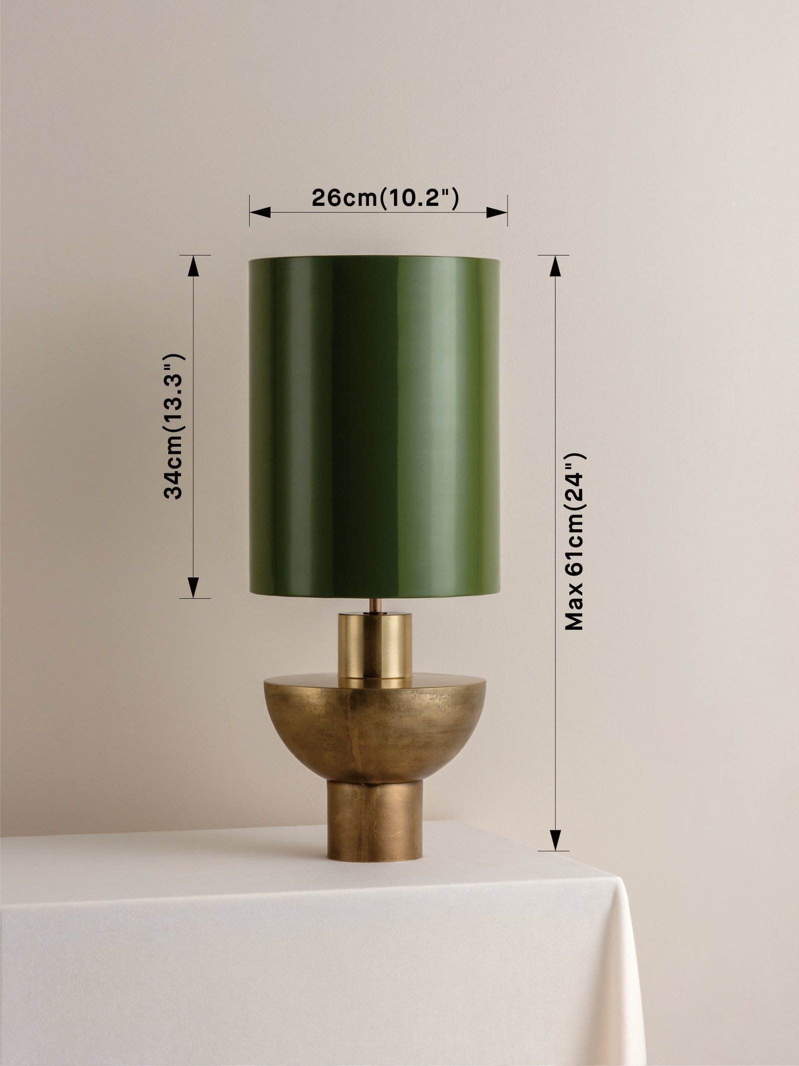 Editions brass lamp with + green lacquer shade